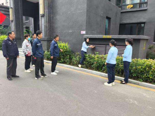 國慶佳節臨近,為保障房地產公司慶云祥云·禧悅名府小區節日期間的安全穩定運行,杜絕各類安全隱患,讓廣大業主度過一個歡樂、祥和、平安的假期,9月28日,潤貴物業慶云分公司主動作為,組織工程、安保、客服等多部門負責人成立專項安全檢查小組,在小區內開展拉網式、全方位的節前安全大檢查,以實際行動為業主安全保駕護航。